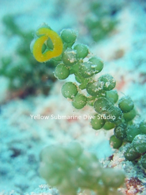 鈴なり(海藻)に産み付けられた、ウミウシの卵塊