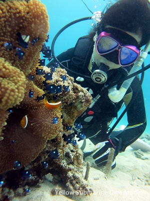 写真は、海の生き物たちとSさん。