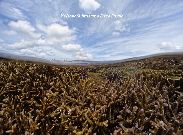 浅いところにあるほとんどの珊瑚がむき出しで、何だか不思議な光景で。