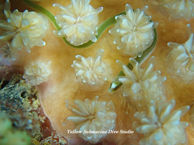 蛍光色の目立つスズメダイの幼魚がよく目につきます。