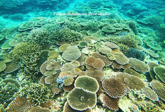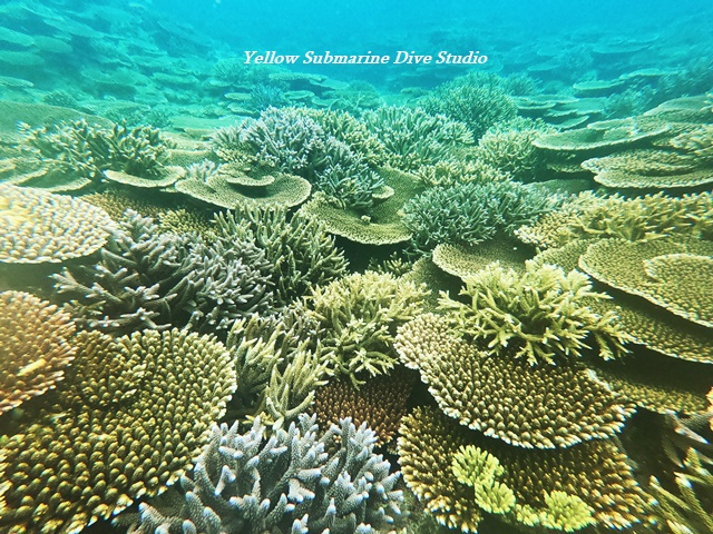 そこにもビックリするくらいのサンゴがあり、大きいテーブルサンゴから枝状のサンゴまでびっしり。