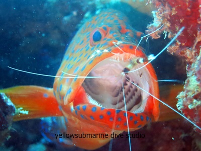 写真は、ユカタハタのクリーニングシーン