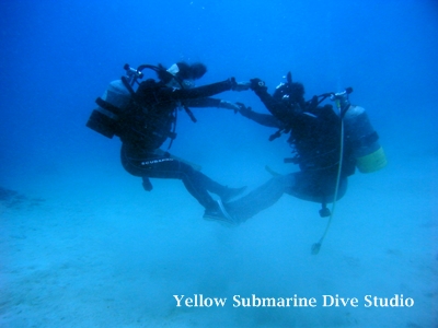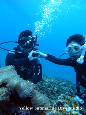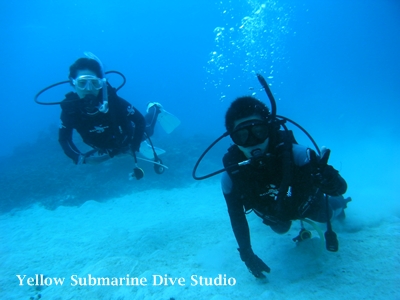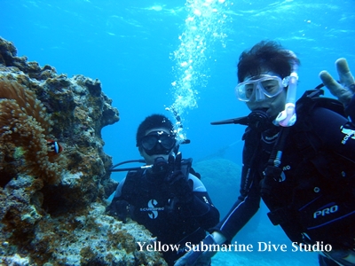Cカードをお持ちの奥さまは体験ダイビングのご主人を優しく見守っています^^