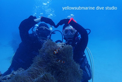 体験ダイバーさん、もじもじ君に変身!!水中ではハートのポーズ決めてくれましたよ。