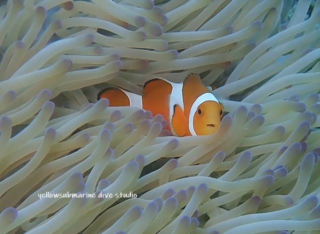 上目遣いのセジロクマノミ。