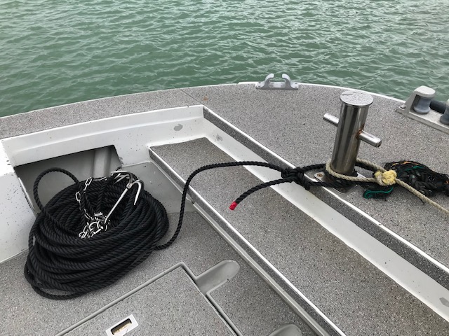 朝のエンジン点検とロープの確認。