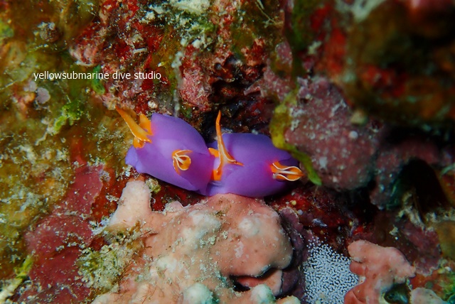 仲良くくっつくムラサキウミコチョウ。