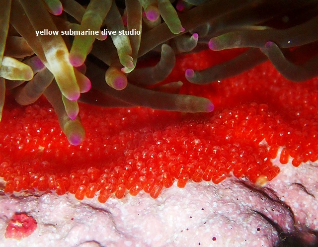 ハマクマノミのオレンジ卵とカクレクマノミの卵ちゃん。