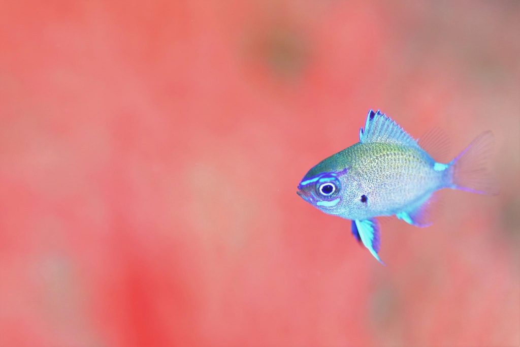 今が旬をお伝えしなきゃとせっせと、ベビーアマミスズメダイを見つけております。