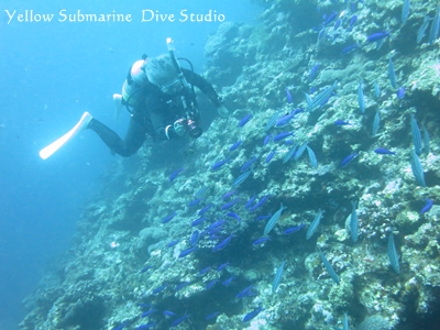 根までおりてきたグルクンやハナゴイたちを撮影っ(^^)