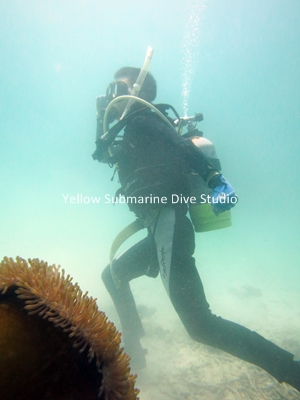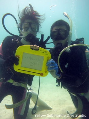 ダイビングは初めてだけれど、マサタカさんは素潜りで15メートルくらいスイスイ潜っちゃうそう♫