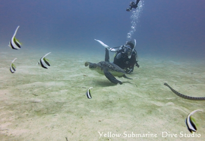 息継ぎしたらまた戻ってくるウミガメさんなのでした♪きっと武藤さんが動画をアップしてくれるはずっ!!ヽ(^o^)丿