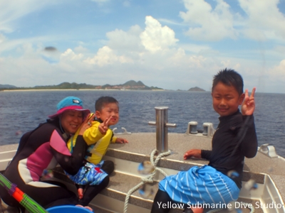 パパ、たいじくん、ゆうとくん、お母さんはシュノーケル。そしてママはダイビングで楽しみますっ!!