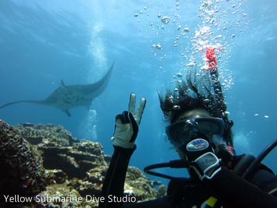マンタと記念撮影です♪♪♪イエーイ\(^o^)/