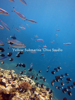 カラフルな魚の群れと太陽の光が差し込む景色がリクエスト!!バッチリだったのではないでしょうか(^^)