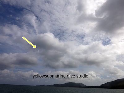 出港~!してまもなく空を見上げると飛行機が見えました。