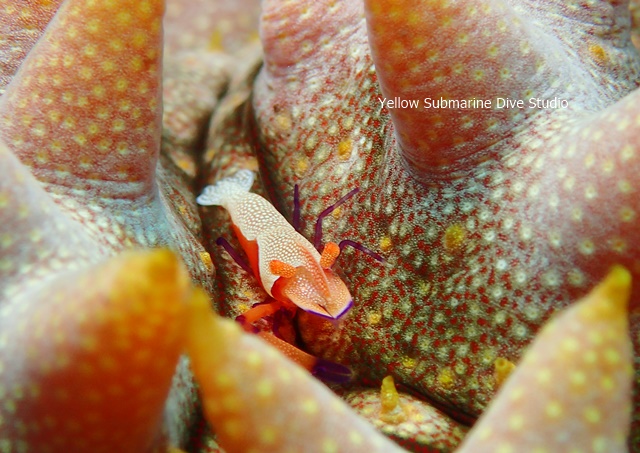 バイカナマコにいたウミウシカクレエビ。