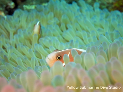 船下にはハナビラクマノミ。しっかり窒素を抜く間に激写出来ます!