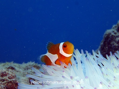 背景ブルーのカクレクマノミ。