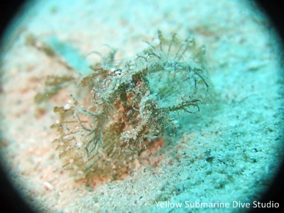 イロカエルアンコウちゃん。今日も布団をかぶるように海草をかぶっていました・・・。