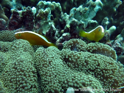 ハマクマノミやカクレクマノミのイソギンチャクはやっぱり白い。キレイだけれど・・・やっぱり元の色がいいですよねっ!!