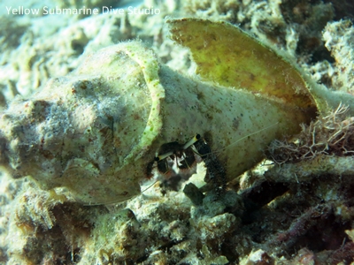 エキジット間際にいたヤドカリさん。宿にするには、とってもボロボロな??貝殻とともに・・・。