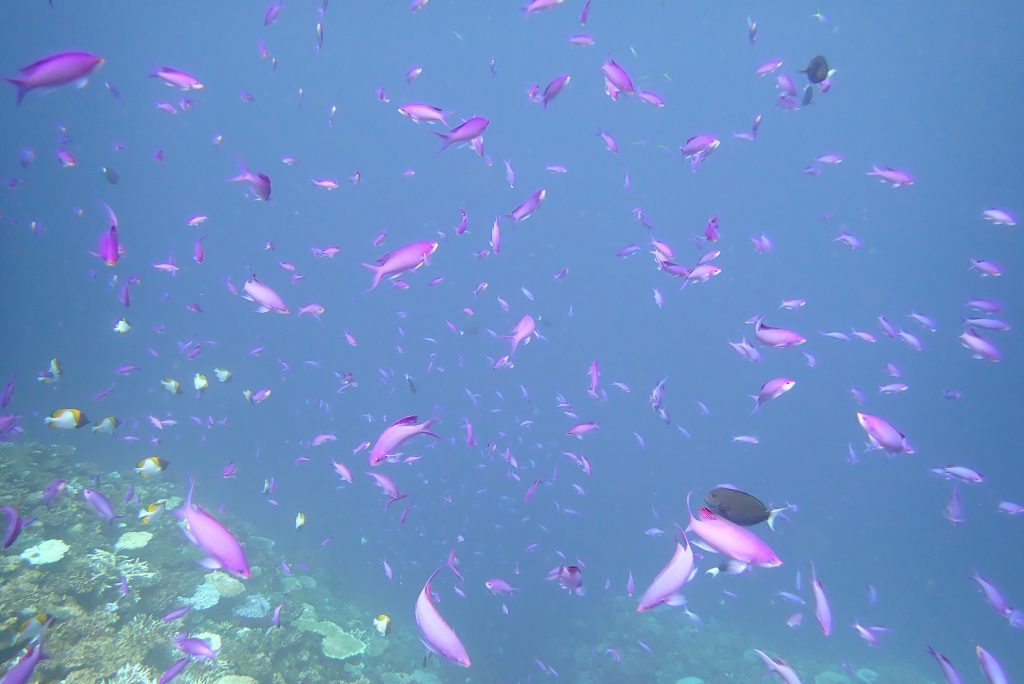 だんだんと秋めいてきて、キイロサンゴハゼのちっこいのも少し増えてきたような気がします。
