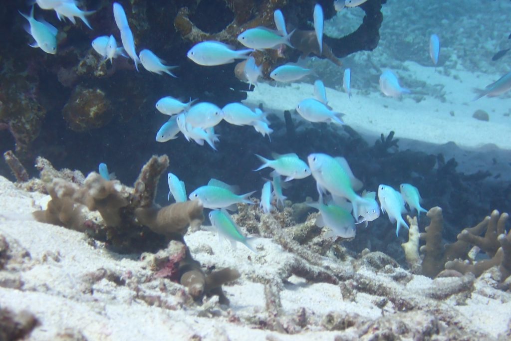 デバスズメダイの放精放卵シーンも見ることができて、生態観察もダイビングの面白さですね。