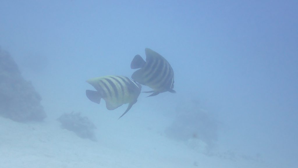 ロクセンヤッコのペアはしばらく並走して泳いでいました。