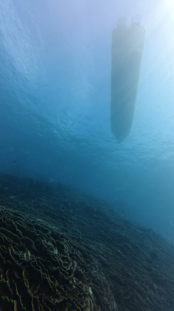 透明度もこれま素晴らしく、船の上から水面を覗き込むとなんとなんとリュウキュウキッカサンゴがばっちり見えてしまいました!